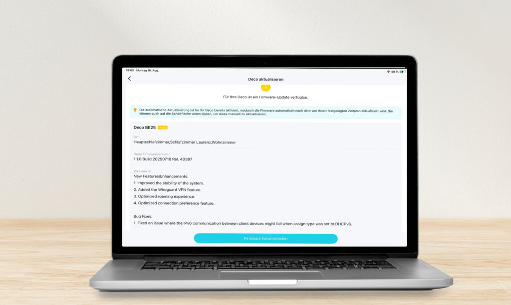 - The app will now ask you to pick a schedule for tp link deco be25 firmware updates. This is the time you will not be able to access the internet since the firmware version will update itself. Prefer keeping a time duration during the night hours like 3AM-4AM, or whenever you are not home or not using the device.